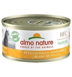 Almo Nature HFC recipes contain only human grade ingredients and a high meat/fish content. It is made exclusively with pure ingredients, i.e. with no additives: 55% chicken breast, 42% chicken broth, 3% rice