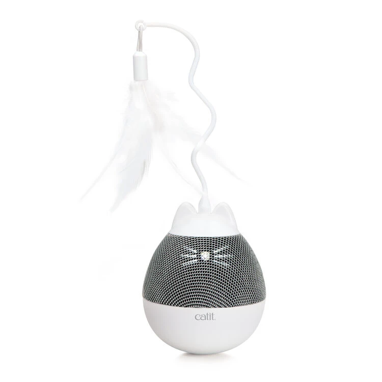Paw-activated whirlwind of feathery fun! At your cat’s touch, the Catit PIXI Spinner will start to spin, dispensing treats to reward play. The toy’s fabric cover is easy to grip for cats, and the cute cat features light up when activated, which is great for nightly play sessions. The toy takes 3x AAA batteries (not included). The The Catit PIXI Spinner is equipped with a unique fabric cover.