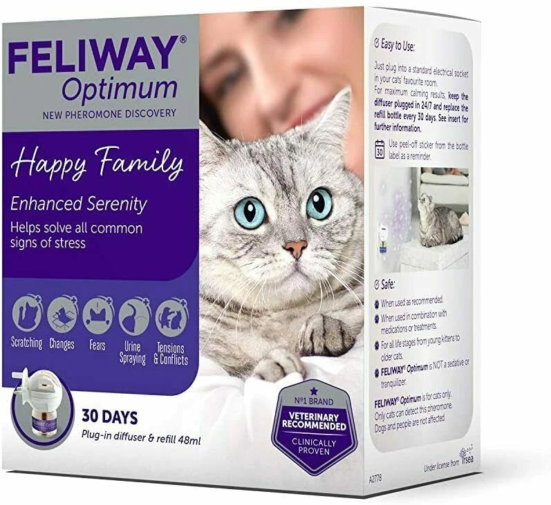 Feliway Optimum is a NEW feline pheromone complex to convey more impactful messages to calm cats better than ever. Supported by 20 years of feline stress expertise and over 25 clinical papers, NEW Feliway optimum contains the most advanced Feline Pheromones Complex, developed by the FELIWAY® research team. This new discovery delivers serenity messages, helping your cats feel comfortable and secure at home, providing reassurance and ensuring harmony between cats.