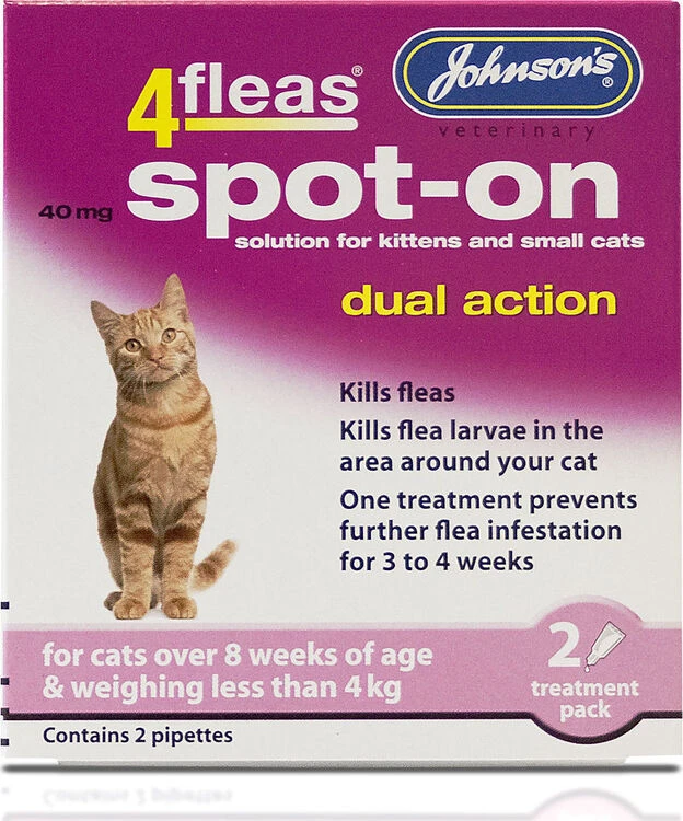 - For cats over 8 weeks of age and weighing less than 4kg