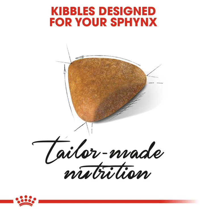 - Specially designed thick triangular-shaped kibble, adapted to the Sphynx cat’s jaw, encourages chewing to help support oral hygiene